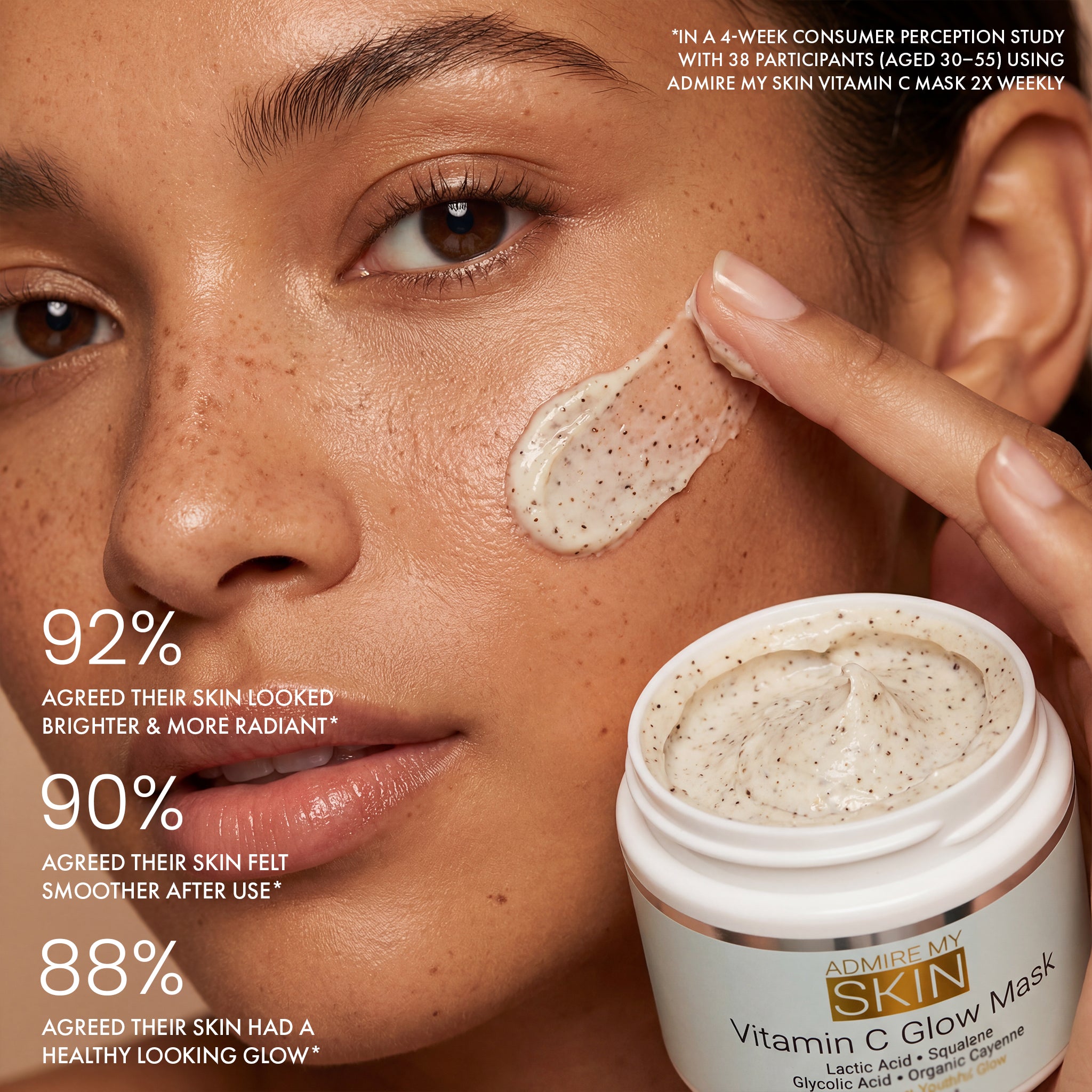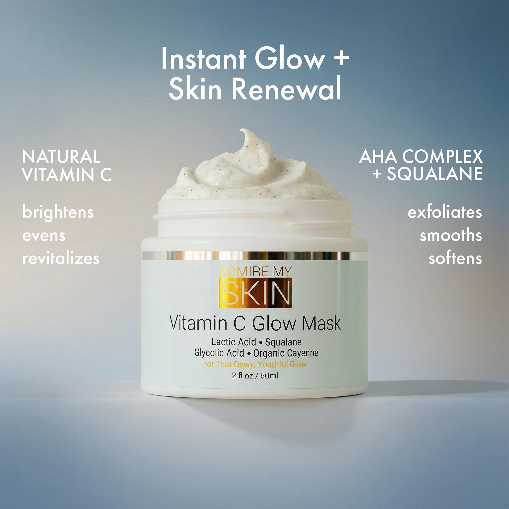 Vitamin C is an incredible antioxidant and anti-inflammatory nutrient, together with lactic and glycolic acids they gently renew skin and allow multiple antioxidants to repair free radical damage. Squalane and other nourishing moisturizers replenish skin, restore glow, skin tone and texture, while it helps to reduce the signs of aging.